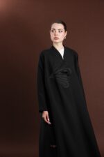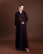 • Design: Front-open abaya with flared cut
