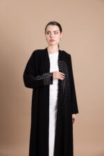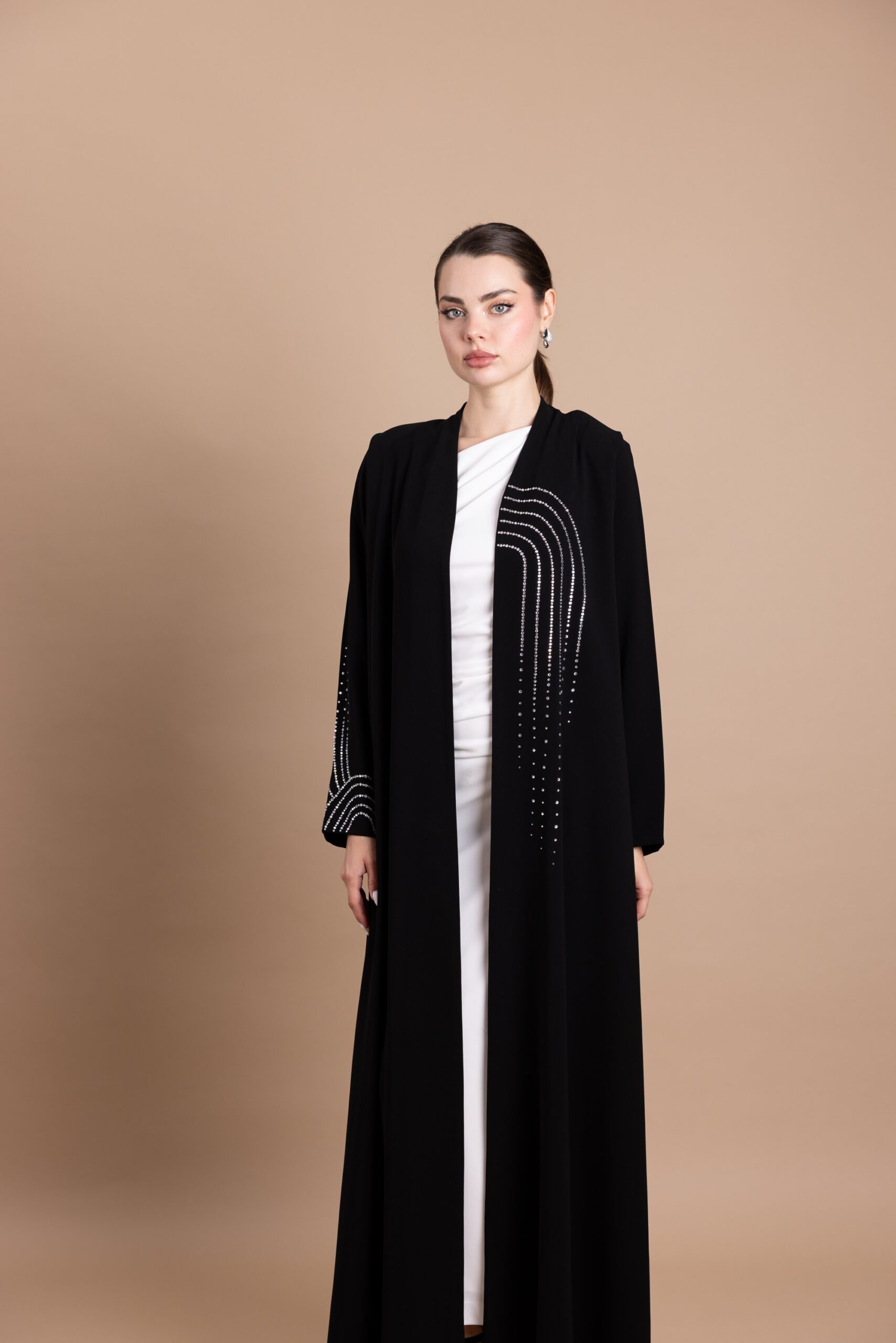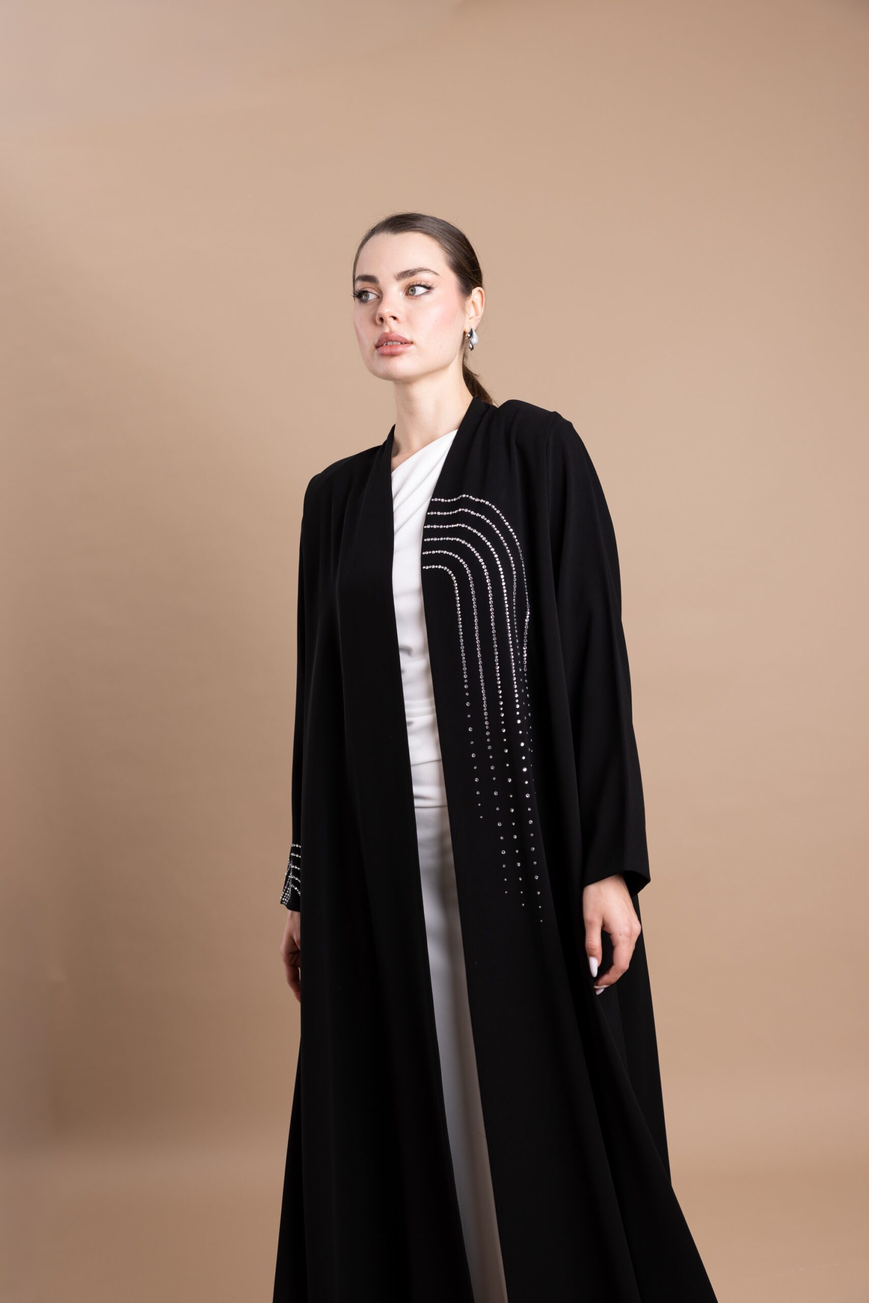 • التصميم: عباية مفتوحة من الأمام، بقصّة كلوش