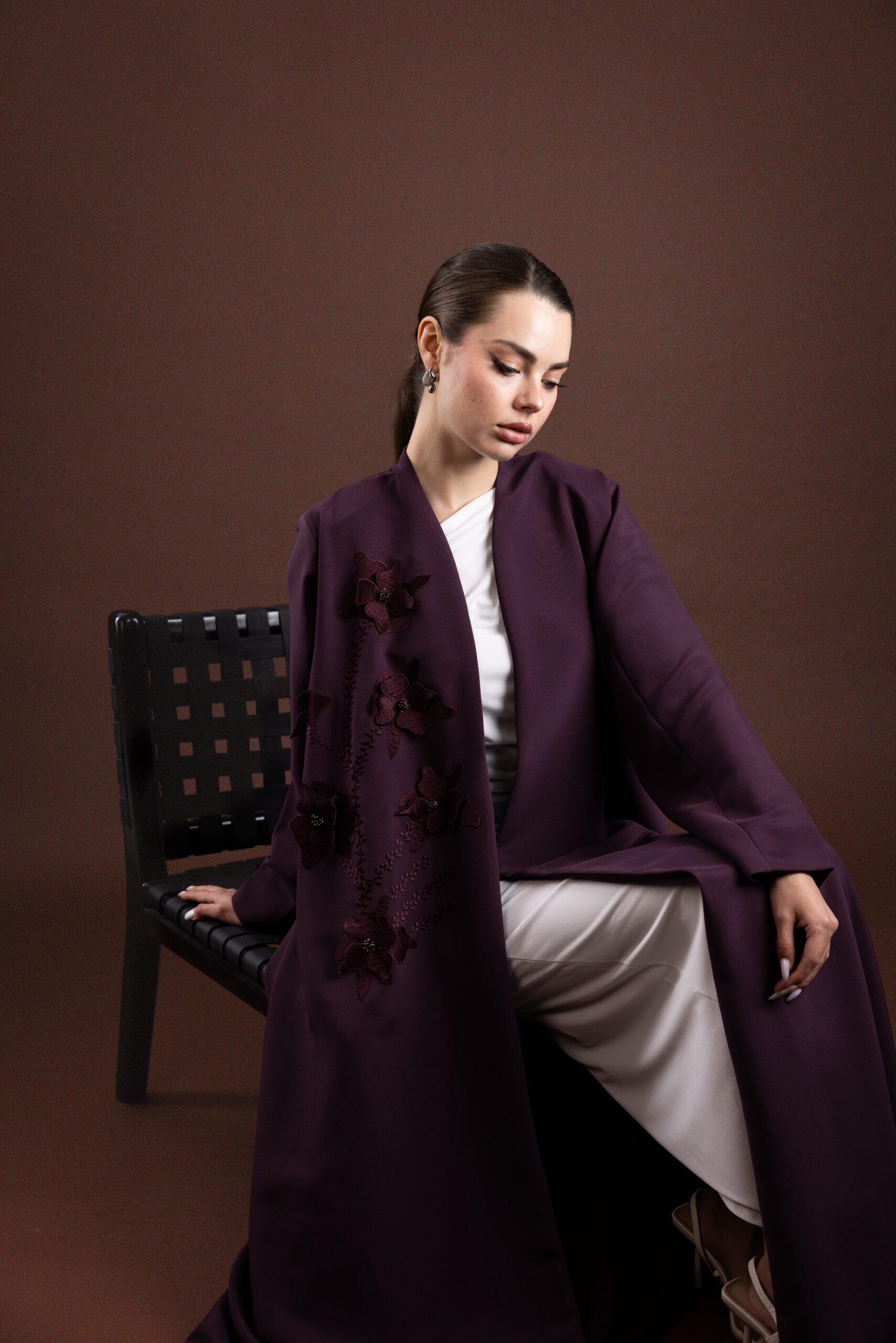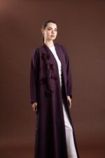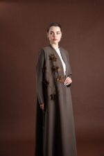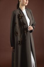 • التصميم: عباية مفتوحة من الأمام، بقصّة كلوش